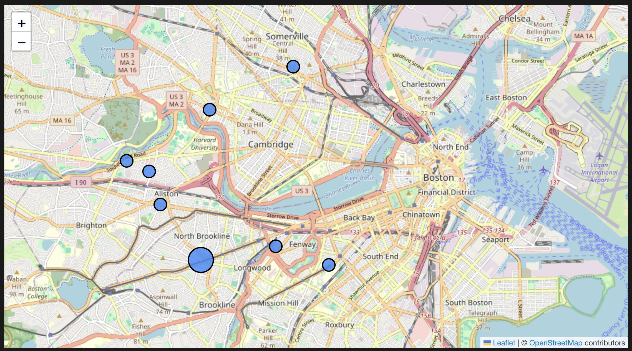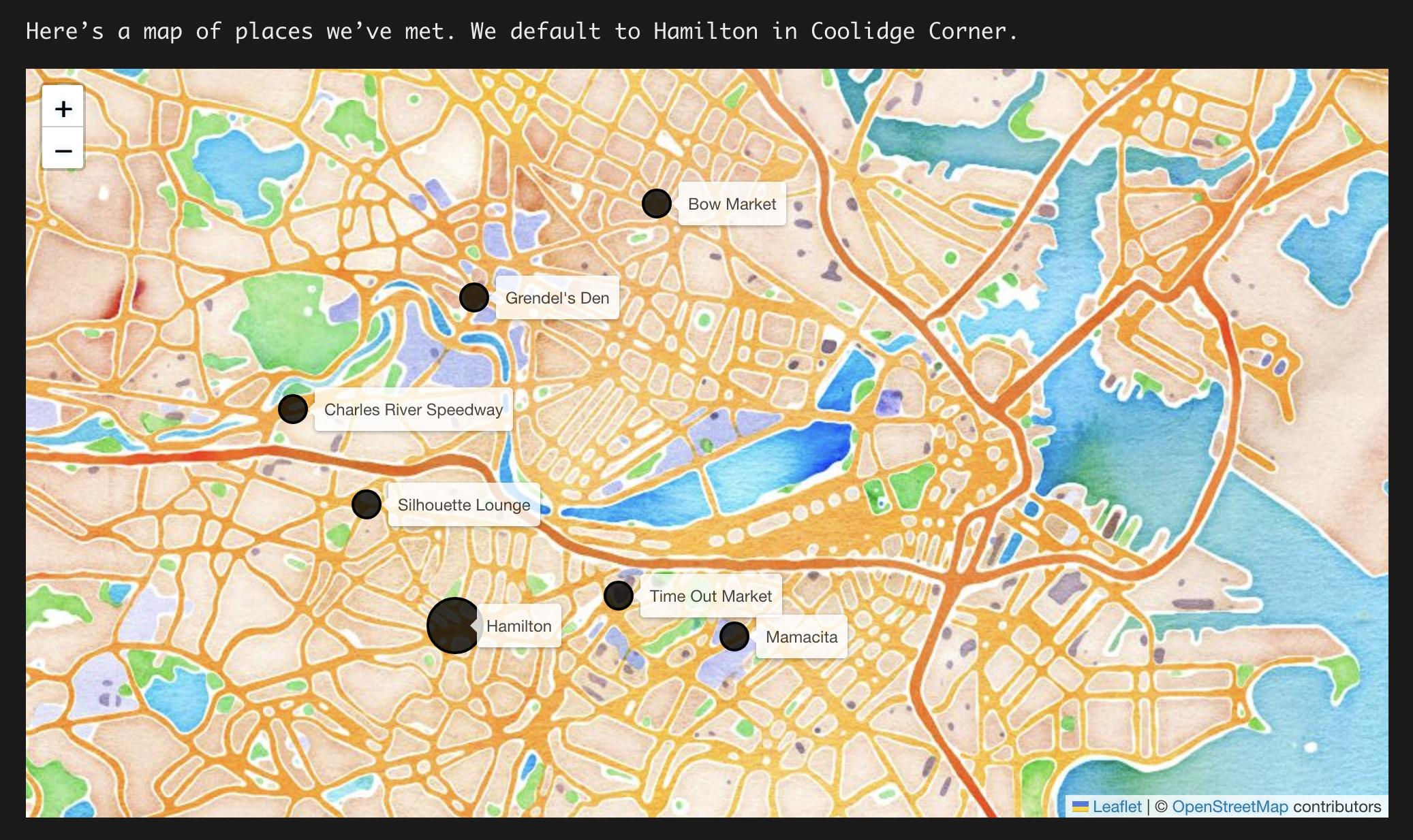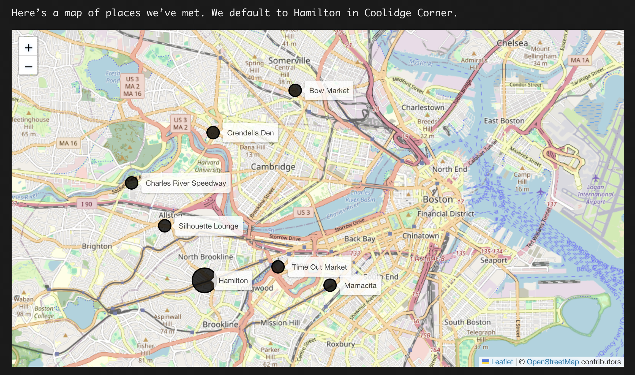 Maybe the marker could be bigger the more often we've met at the same place to convey where we meet most often.