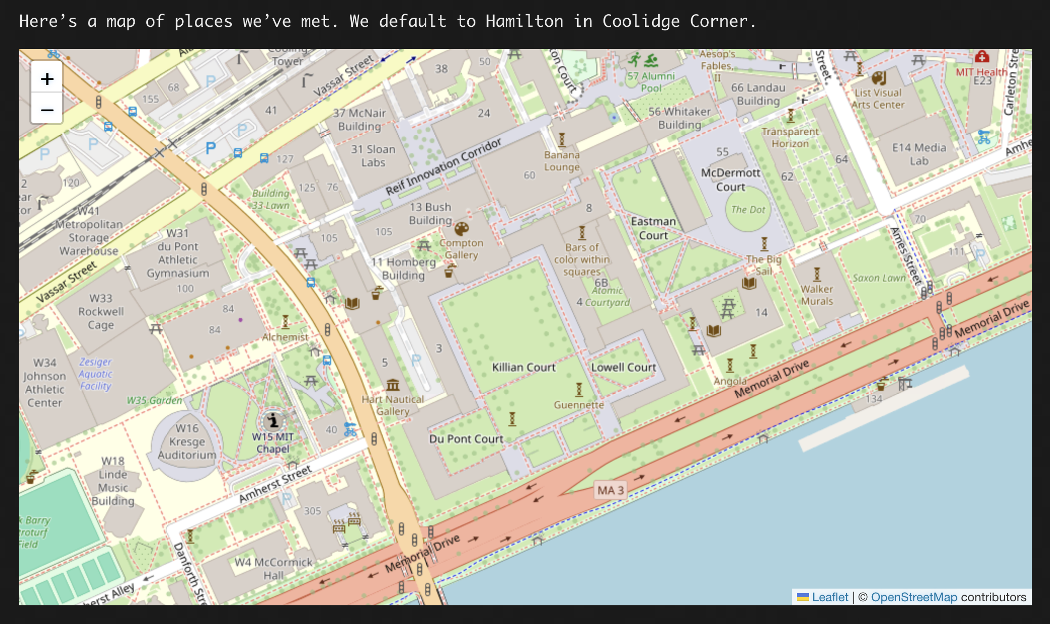 Maybe the marker could be bigger the more often we've met at the same place to convey where we meet most often. ![]()