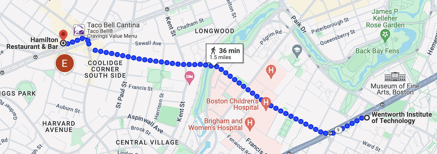 Well, WIT is on the E line and Hamilton is on the C line. Google Maps is suggesting the 66 bus.