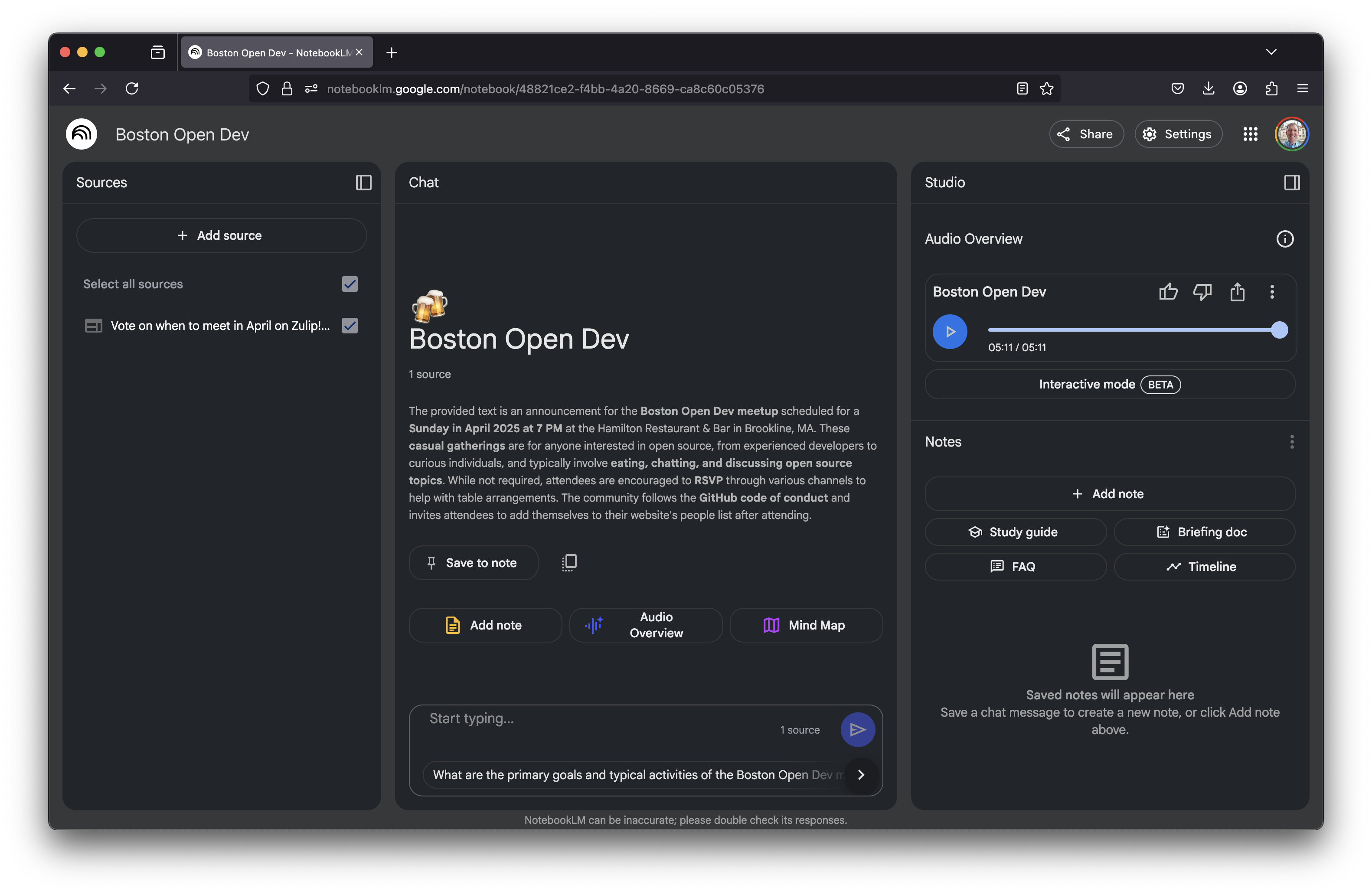 Has anyone played with NotebookLM? I just fed it https://bostonopen.dev as a URL and it spit out this audio summary: